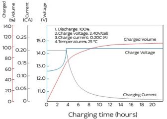 - Срок хранения без подзаряда: 6 мес. при 25°C;