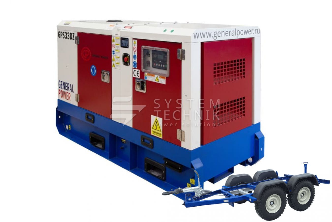 - Дизельный генератор General Power GP33DZ в кожухе на прицепе
