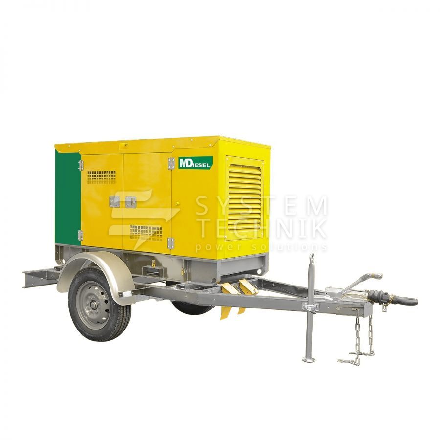 Дизельный генератор MitsuDiesel МД ЭД-30-Т400-1РКМ29 в шумозащитном кожухе на шасси на прицепе в Долгопрудном