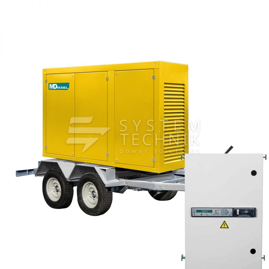 - MitsuDiesel МД ЭД-40-Т400-2РПМ29 в погодозащитном кожухе на шасси с АВР на прицепе