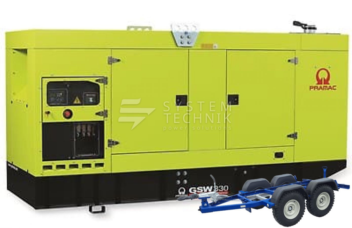 - Дизельный генератор Pramac GSW 330 V 400V В кожухе на прицепе